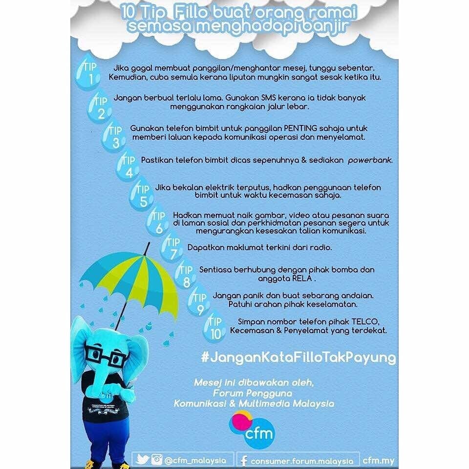 Bagi memudahkan komunikasi semasa bencana banjir berlaku,adalah dinasihatkan untuk mengikuti 10 tips ini dariFillo & @cfm_malaysia.