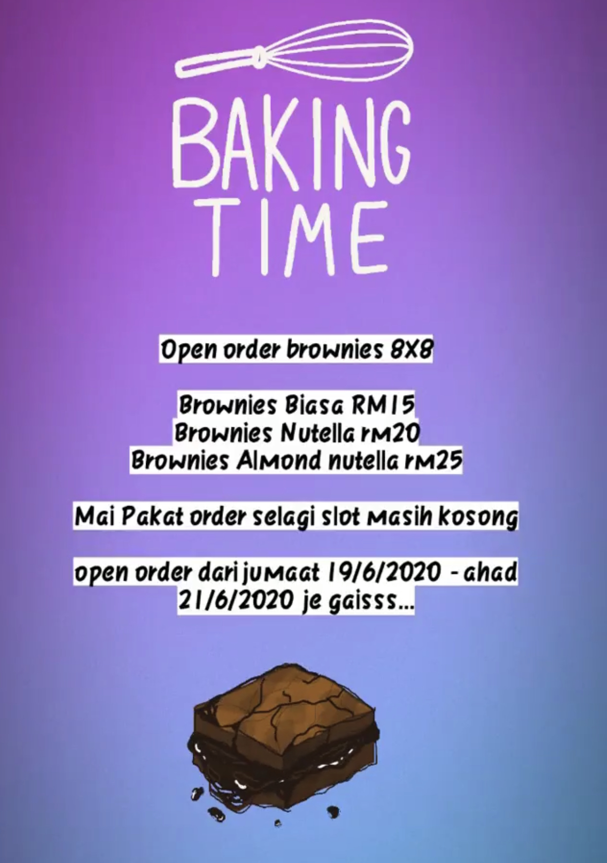 Harga:Brownies Biasa RM 15,Brownies Nutella RM 20