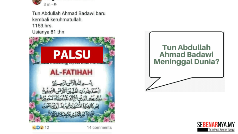 Dakwaan Tun Abdullah Ahmad Badawi Meninggal Dunia Adalah Tidak Benar