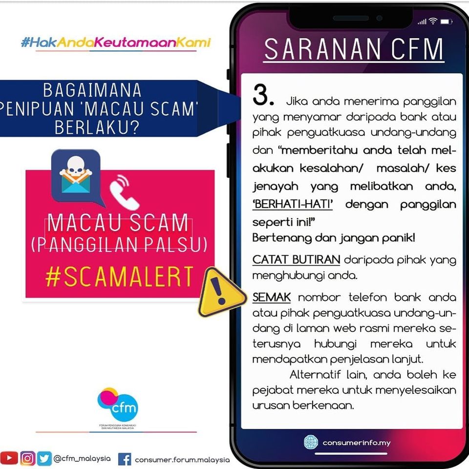 “Ingat! MACAU SCAM ini tidak tertumpu kepada warga tua sahaja…warga muda pun perlu berwaspada!”