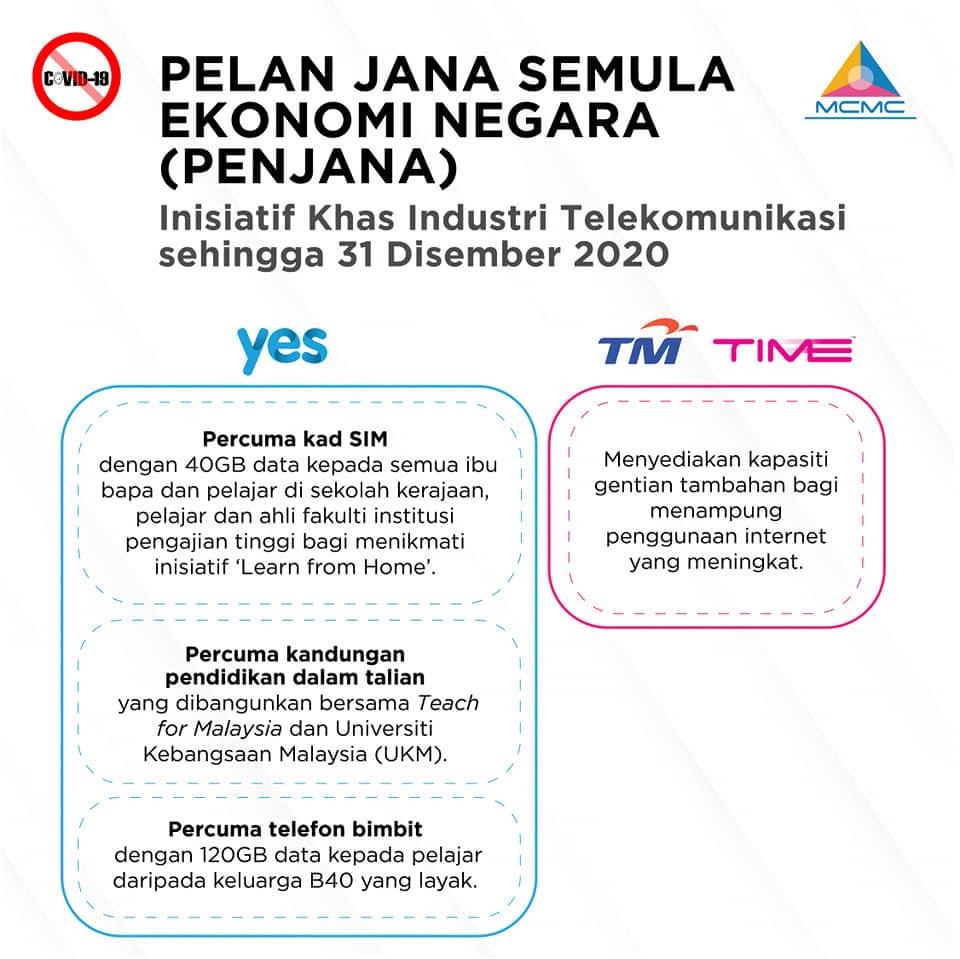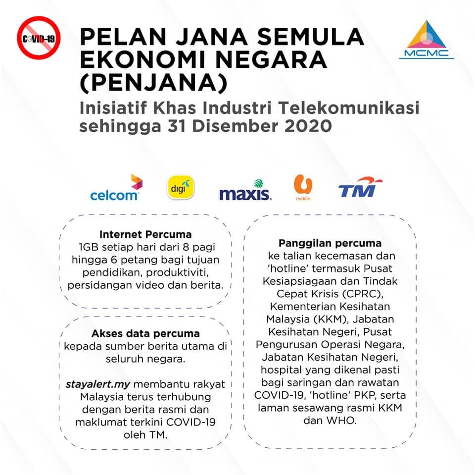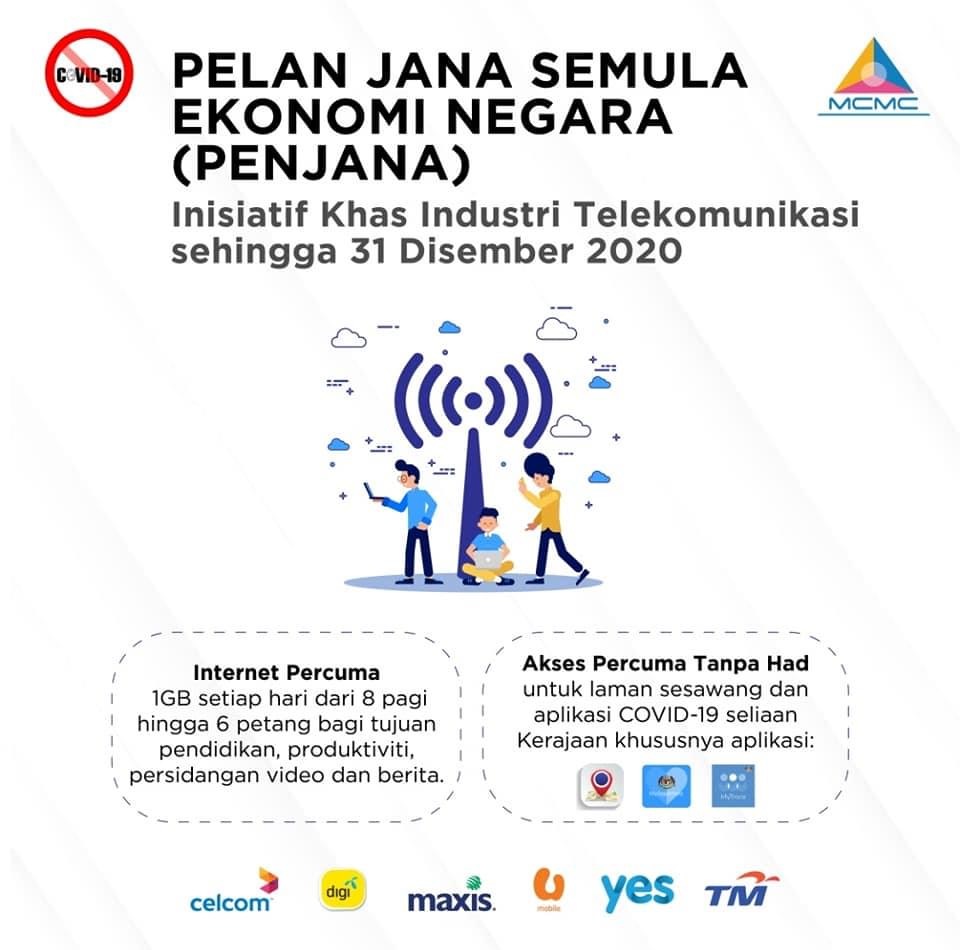 1GB secara percuma setiap hari dari jam 8 pagi hingga 6 petang, mulai 10 Jun 2020