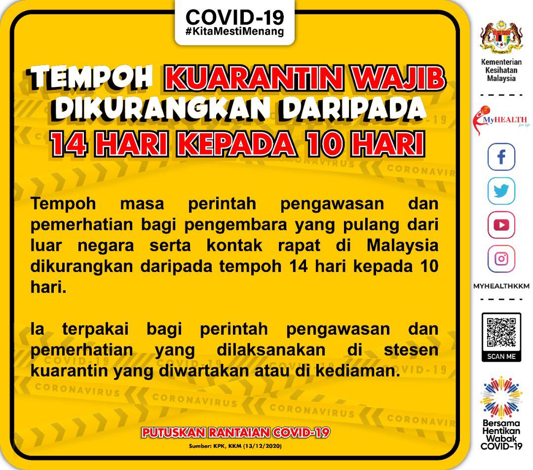 dikurangkan daripada tempoh 14 hari kepada 10 hari.