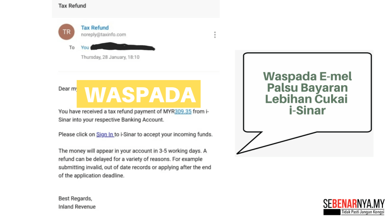 Waspada E-mel Palsu Bayaran Lebihan Cukai i-Sinar